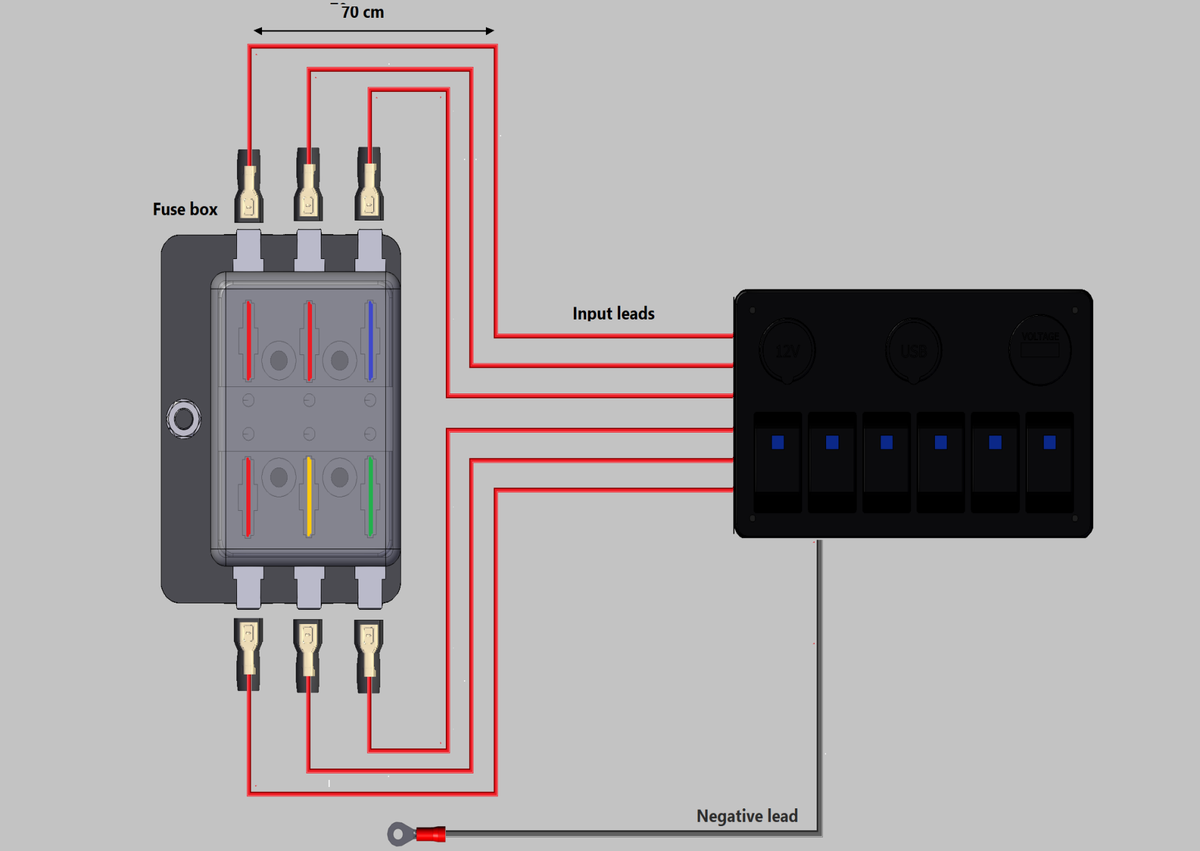 Met dit pakket ontvangt u het paneel dusdanig voorbedraad, dat u deze zel kunt aansluiten op een bestaande zekeringkast bij u aan boord. Iedere schakelaar heeft zijn eigen input lead, welke u aansluit op de bijbehorende zekering.