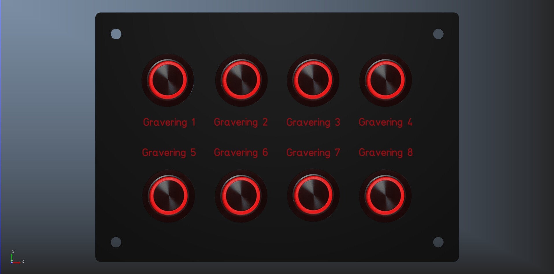 8-voudig schakelpaneel met 8 RVS drukknoppen en custom graveringen